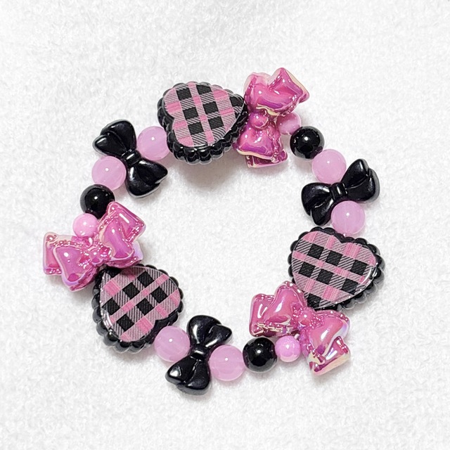とっておきのラブなパワーを詰め込んだ 超絶キュートなブレスレット☆ 大きめモチーフで一気にハピきゅん♡になれるヨ❣️ ゴムブレスレットです(^> ·̮ <^) (約16センチ)